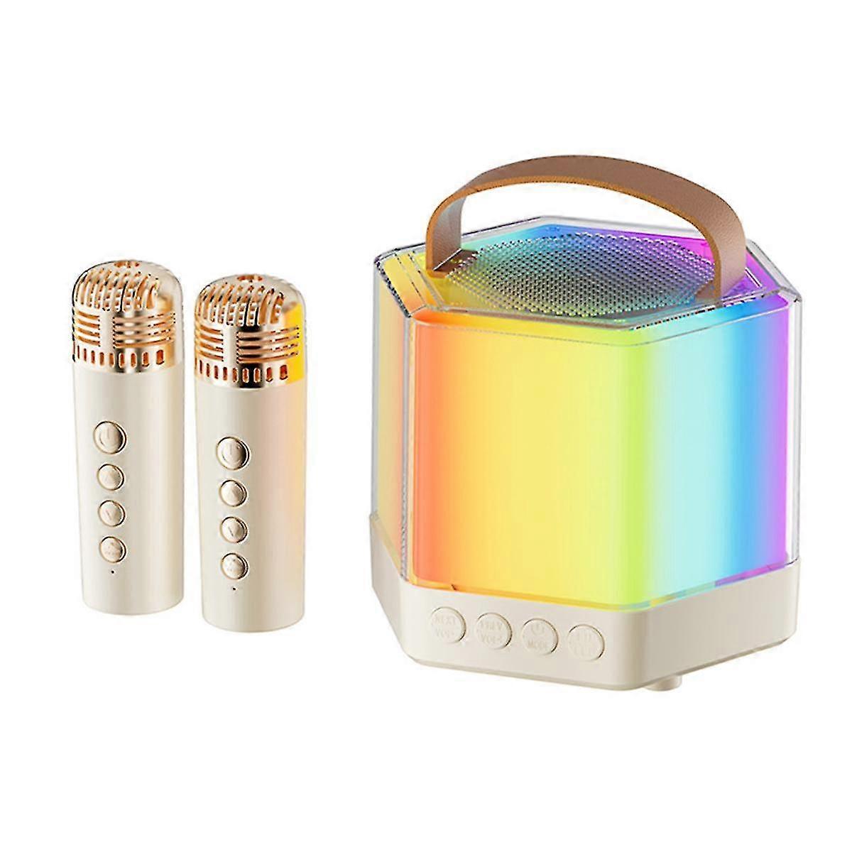 ,bluetooth Portable Karaoke Speaker With Bass With Dazzling Lights For Adults And Kids Microphones White