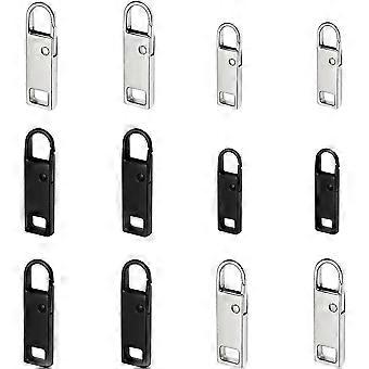 Zipper Pull Replacement (2022 Upgraded), 12 Pcs Detachable Zipper Pull Tabs For Luggage Clothing Jackets Backpacks Boots Purse Coat(2size, 2 Color Bla