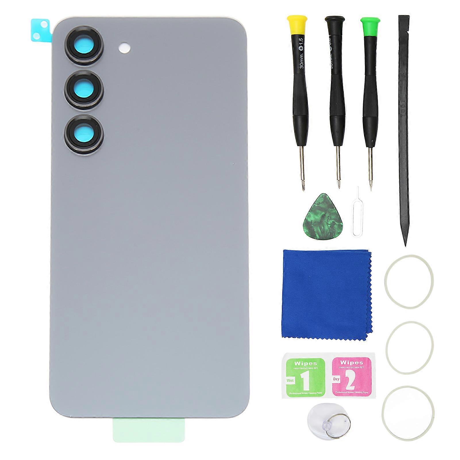 Replacement Back Glass Phone Rear Glass Cover Housing with Pre Installed Camera Lens Tape for Galaxy S23 Gray