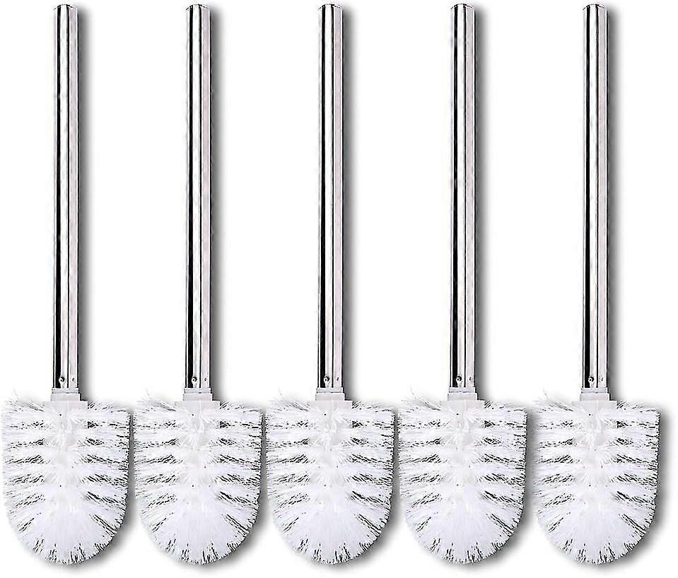 Replacement Brushes Pack Of 5 Toilet Brushes White Brush Head Stainless Steel Handle Polished Toilet Brush Brushes