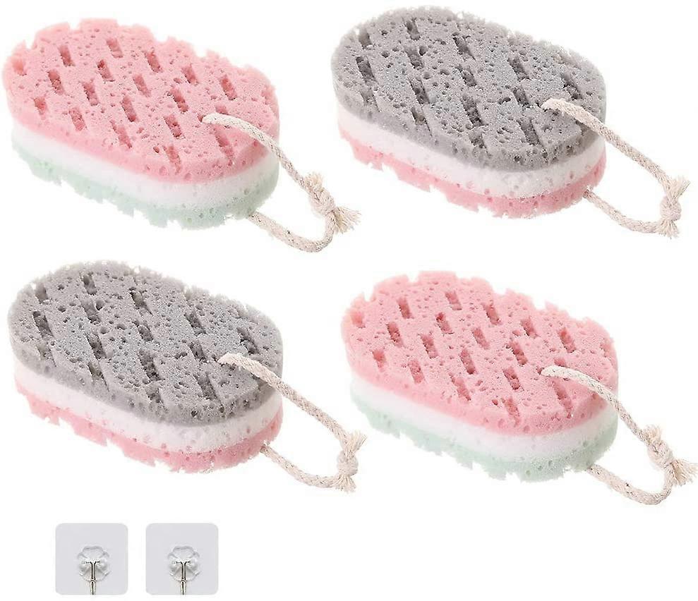 Bath Sponge for Adult, Soft Bath Massage Sponge with 2 Hooks Body Exfoliator Sponge for Women (4 Pieces)