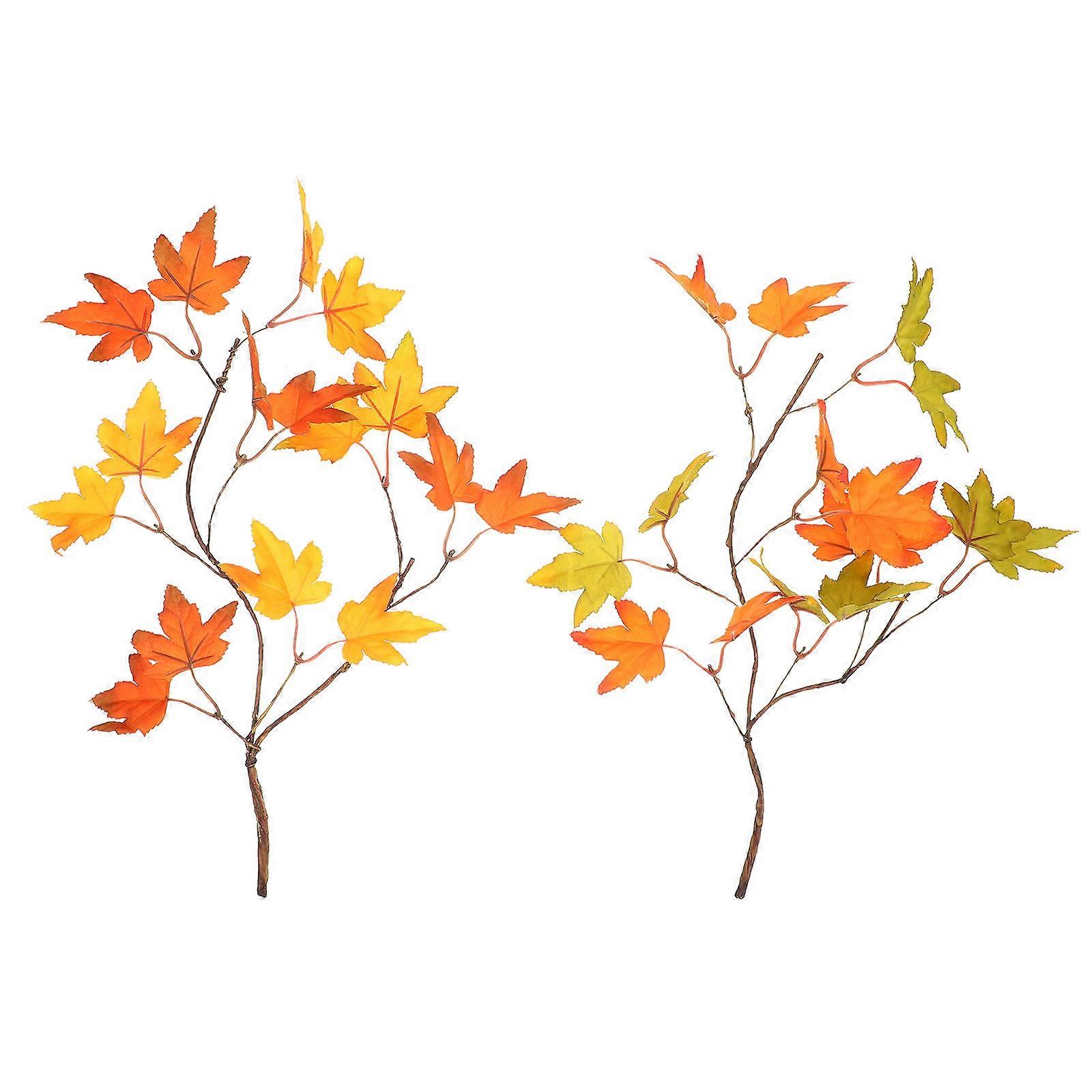 Artificial Maple Leaf Simulation Maple Leaf Ornament Office Decoration Realistic Shape Cloth 2Pcs