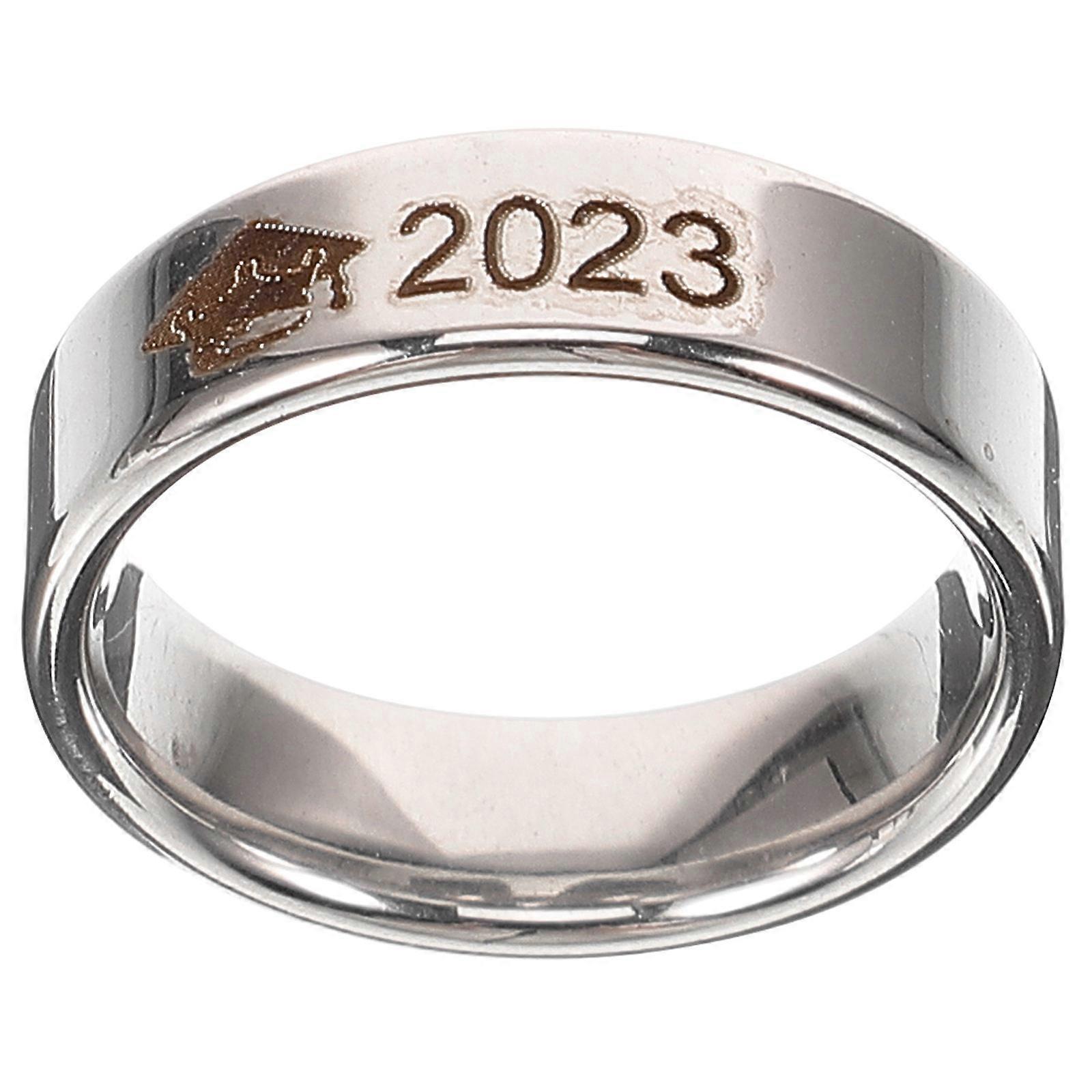 Graduation Ceremony Accessories Stainless Steel Graduation Ring For Men And Women Silver Color 1Set