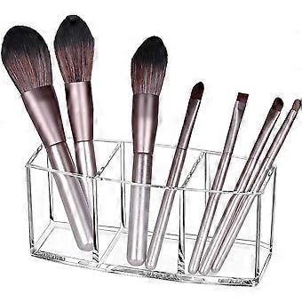 Acrylic 3 slots Makeup Brush Holder Organizer, Eyebrow Eyeliner Pencil Display Case for Vanity, Dressing Table, Countertops, Clear