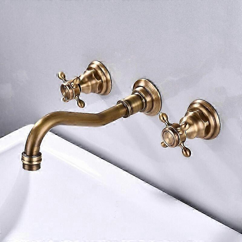 Antique Finish 3-Hole Wall Mount Faucet for Bathroom Basin