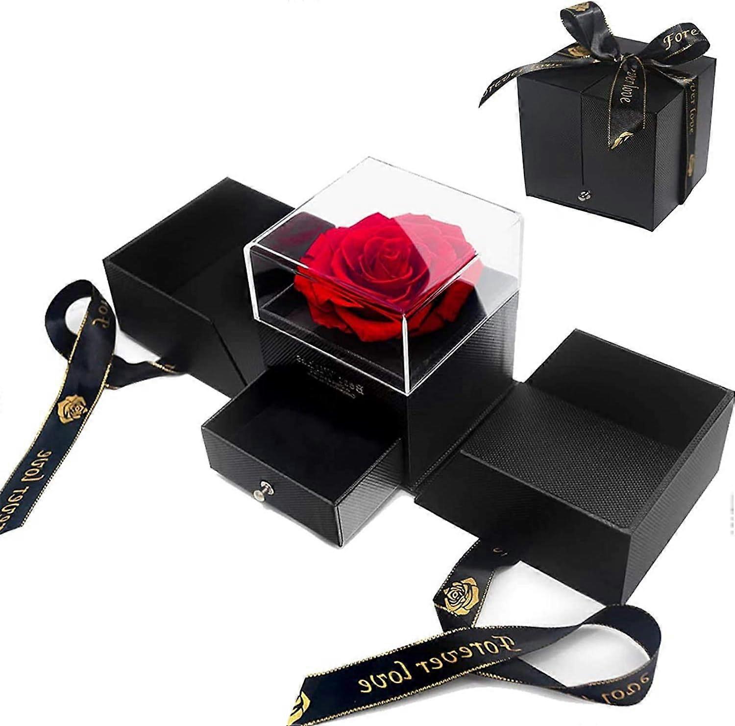 Exquisite Gift Box Handmade Real Rose Petal, Symbolizes Romance And Warm Love, 100% Natural Handmade Fresh Flower, Processed By Unique Preservation Method. Keep Your Love Fresh And Forever. It Is An Attractive And Great Gift For Women To Show Your Love, Appreciation, Respect, Blessings, Caring, Friendship, Etc., Gifts For Women. Eternal Rose The Rose Is A Symbol Of Eternal Love, Which Stands For "You Are My Only One". The Preserved Flower Is Made From Rose Using A Unique Preservation Process. People Never Call It Withered Flower And Everlasting Flower. Stabilized Roses By Hand With A Shelf Life Of 3 To 5 Years, Without Watering And Daily Storage, Just By Keeping Them Clean And In A Normal Environment. Rose Box Size Rose Diameter Is About 8Cm, Jewelry Box: 10.2 * 9.8 * 11Cm. The Size Of The Drawer Box Is: 8.2 * 8.6 * 2.9 Cm, Normal Bracelets, Necklaces, Rings, Earrings And Watches Can Be Stored In The Drawer. The Rose Box Adapts To Its Noble Design With Bright Colors And The Touch Of The Petals. It Is Definitely An Unexpected Gift. Perfect Gift This Gift Box Is Made Of High Quality Immortal Flowers And Comes With Exquisite Packaging, With A Greeting Card You Can Write Your Wishes Or Love, A Perfect Gift For Wife, Girlfriend, Boyfriend, Mother And Friends. Suitable For Dance Parties, Valentine'S Day, Mother'S Day, Christmas, Birthday, Anniversary Or Other Occasions.