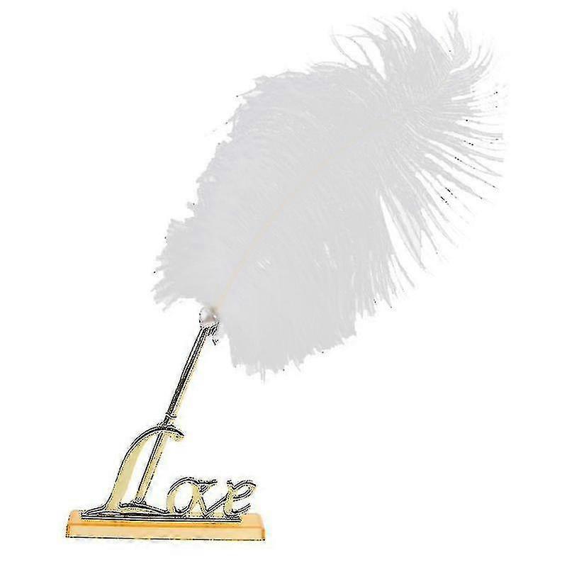White Signing Pen With Gold Plated Metal Love Holder Wedding Pen Set