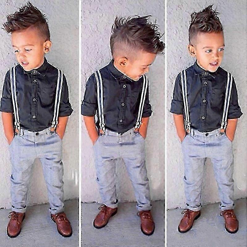 Kids Boys Gentleman Shirt Top + Suspender Long Pants Outfits Formal Suit
