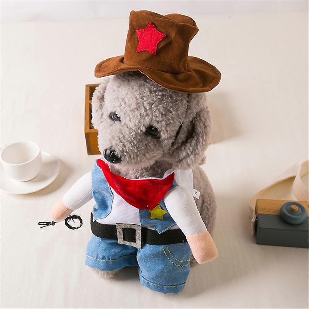Product Description FEATURE: This Cowboy costume will make your pet more adorable and add fun to the special day, get your pet involved in the entertainment you have at the festival. SUITABLE: Suitable for Spring Winter or Autumn.Keeps your pet warm and cozy throughout any outdoor activity. great idea for any festival like Thanksgiving Day, Easter Day, Halloween, Birthdays, Weddings, Parades, Photo Shoot ,Weekend Parties or Daliy Wear. Material:Polyester Size:S,M,L,XL Packageinclude:1x Pet Costume Note: 1. Due to the different monitor and lighting effect, the actual color of the item may be slightly different from the color shown on the pictures. 2. Please allow 1-3cm error due to manual measurement. (1 inch = 2.54 cm) Thanks for your support :)