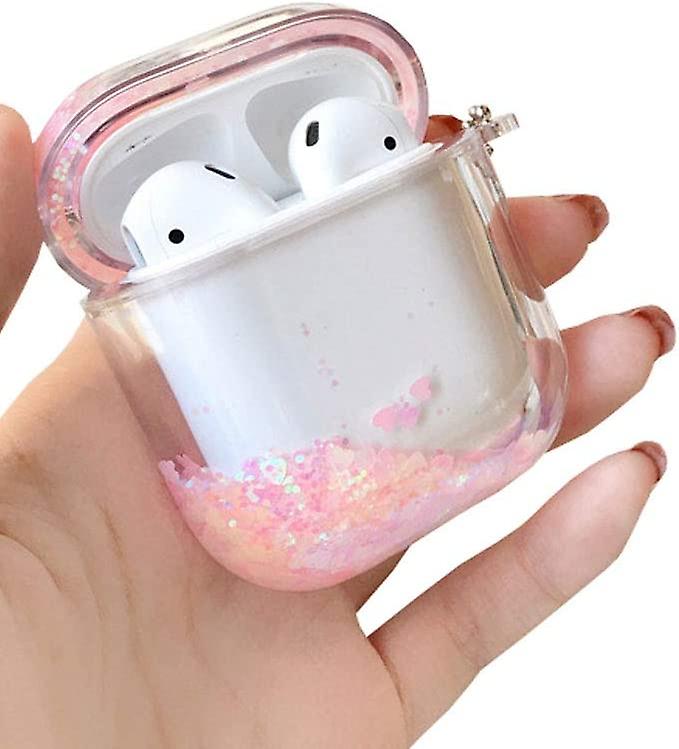 Creative Elegent Quickstand Moving Bling Glitter Loving Heart Design Airpods Case Cute Fresh Hard Plastic Protective Wireless Earphone Charging Case D