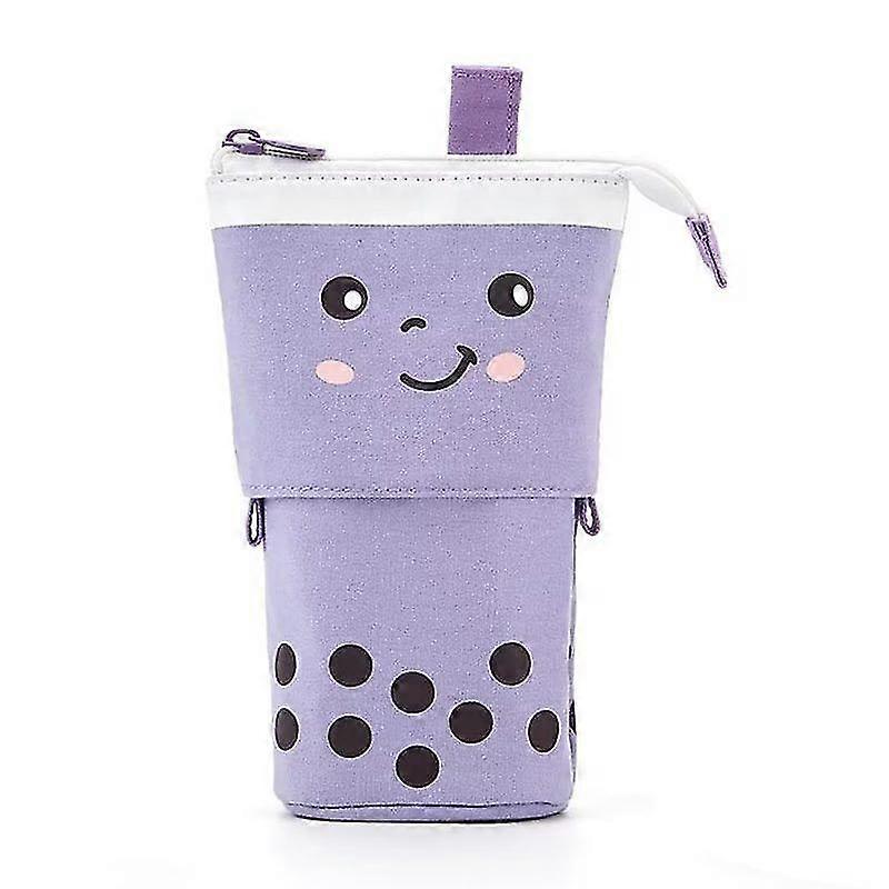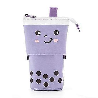 Creative Cute Milk Tea Drop-down Pen Bag Can Stand Retractable Round Cute Cartoon Pen Holder Storage