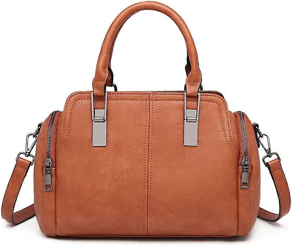 Brown Handbag Women Retro Boston Top Handle Bag With Magnetic Compartment Crossbody Bag