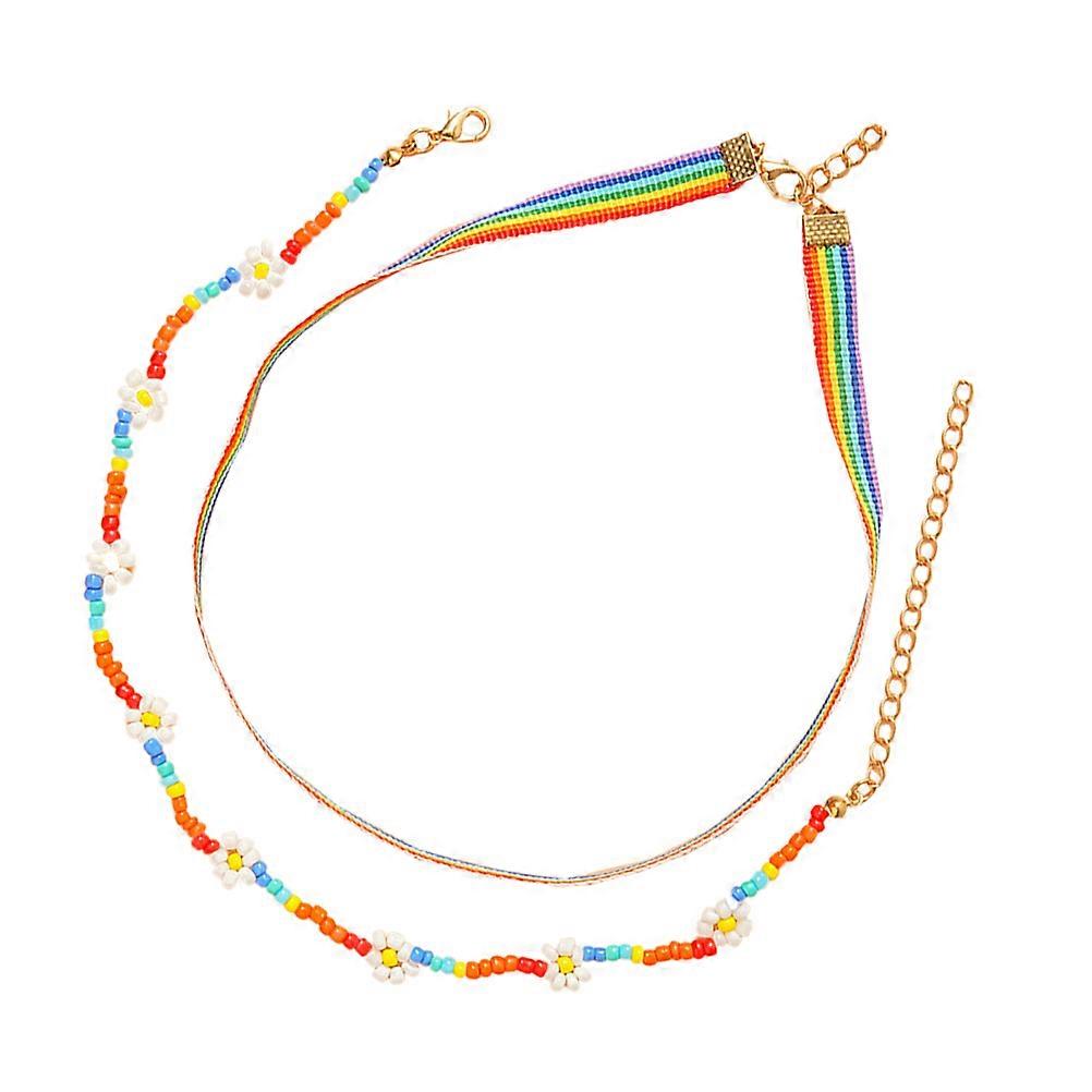 Bohemian Colorful Beaded Necklace Women Summer Outfits Layered Design 2Pcs