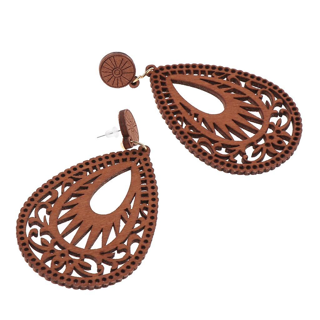Bohemian Women Wooden Earrings Dangle Pendant Hook Earrings Coffee Color