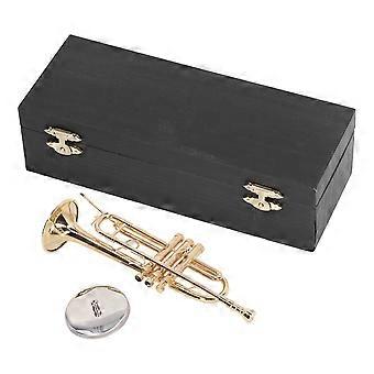 Miniature Trombone with Stand Brass Lifelike Mini Musical Instrument Dollhouse Model Home Decoration