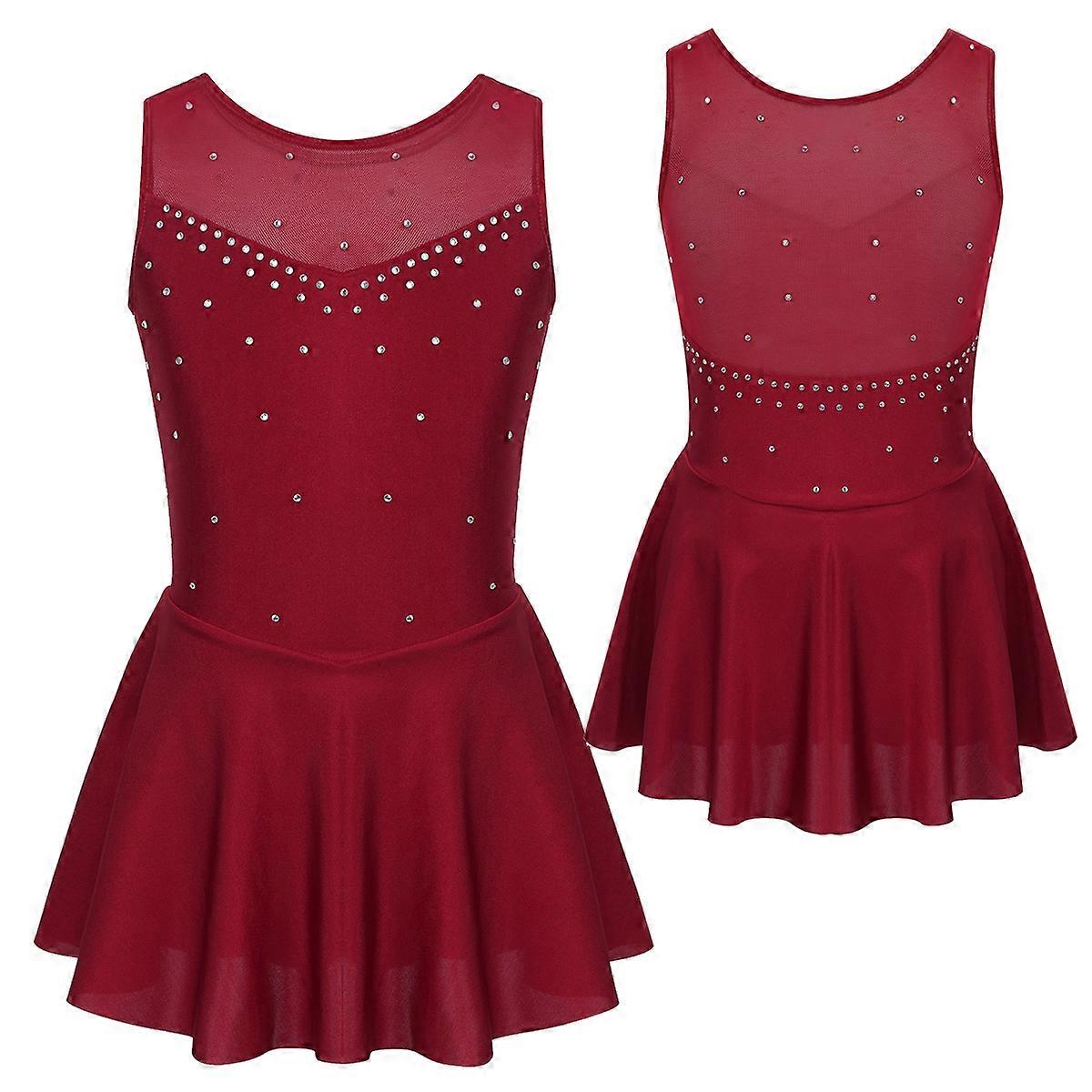 Figure Skating Dress Kids Girls Rhinestone Mesh Splice Ballet Dance Gymnastics Leotard Tutu Dress Stage Performance Costume