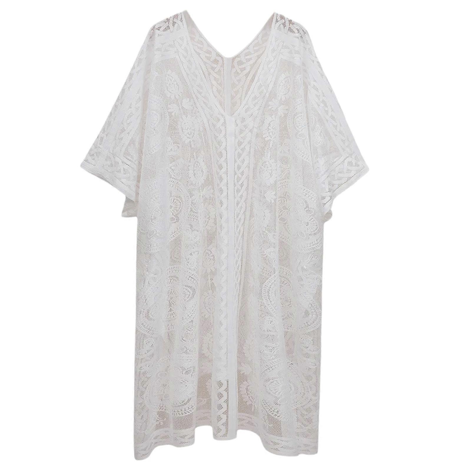 Stylish Beach Coverup for Women See Through Sheer Bathing Suit Coverup Lace Sheer Swimsuit Coverup for Beach Parties White