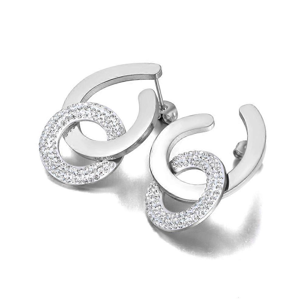 Titanium Stainless Steel Geometric Circle Earrings For Women Trendy CZ Crystal Party