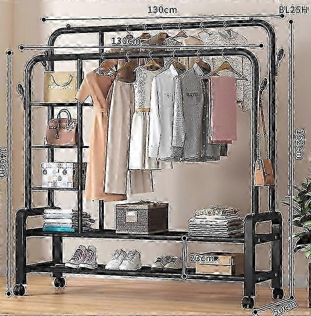Heavy Duty Double Clothes Rail 120KG Load Cloth Rack With Shelves & Shoe Stand