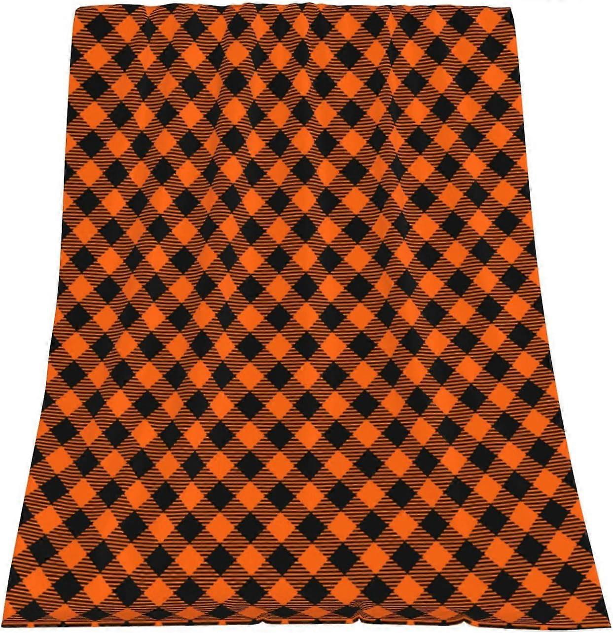 Buffalo Check Plaid Throw Blanket for Autumn Farmhouse Style Orange Black Lightweight Warm Super Soft Cozy Flannel Fleece Blankets for Girls Women for