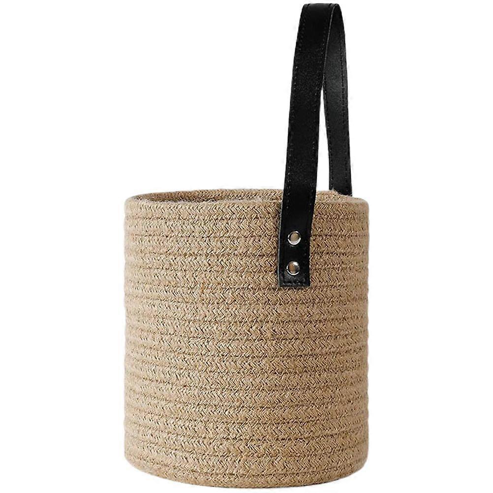 Wall Hanging Storage Basket Small Cotton Rope Leather Handle Flower Basket