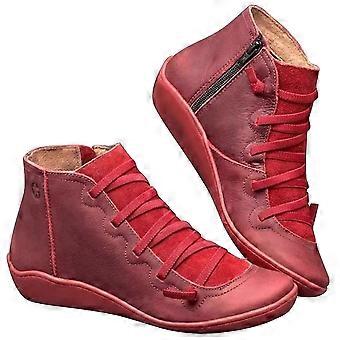 Leather Ankle Boots Autumn Vintage Lace Up Women Shoes Comfortable Flat Heel Boots Zipper Short Boot