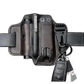 Leather Organizer Sheath Belt Buckle Leather Multi-function Tool Holder With Key Holder For Belt And Flashlight