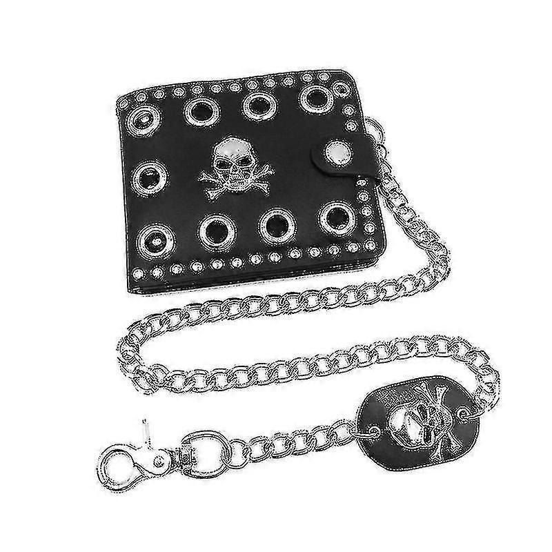 Leather Cool Punk Gothic Western Skull Clutch Purse Wallets With Chain For Men