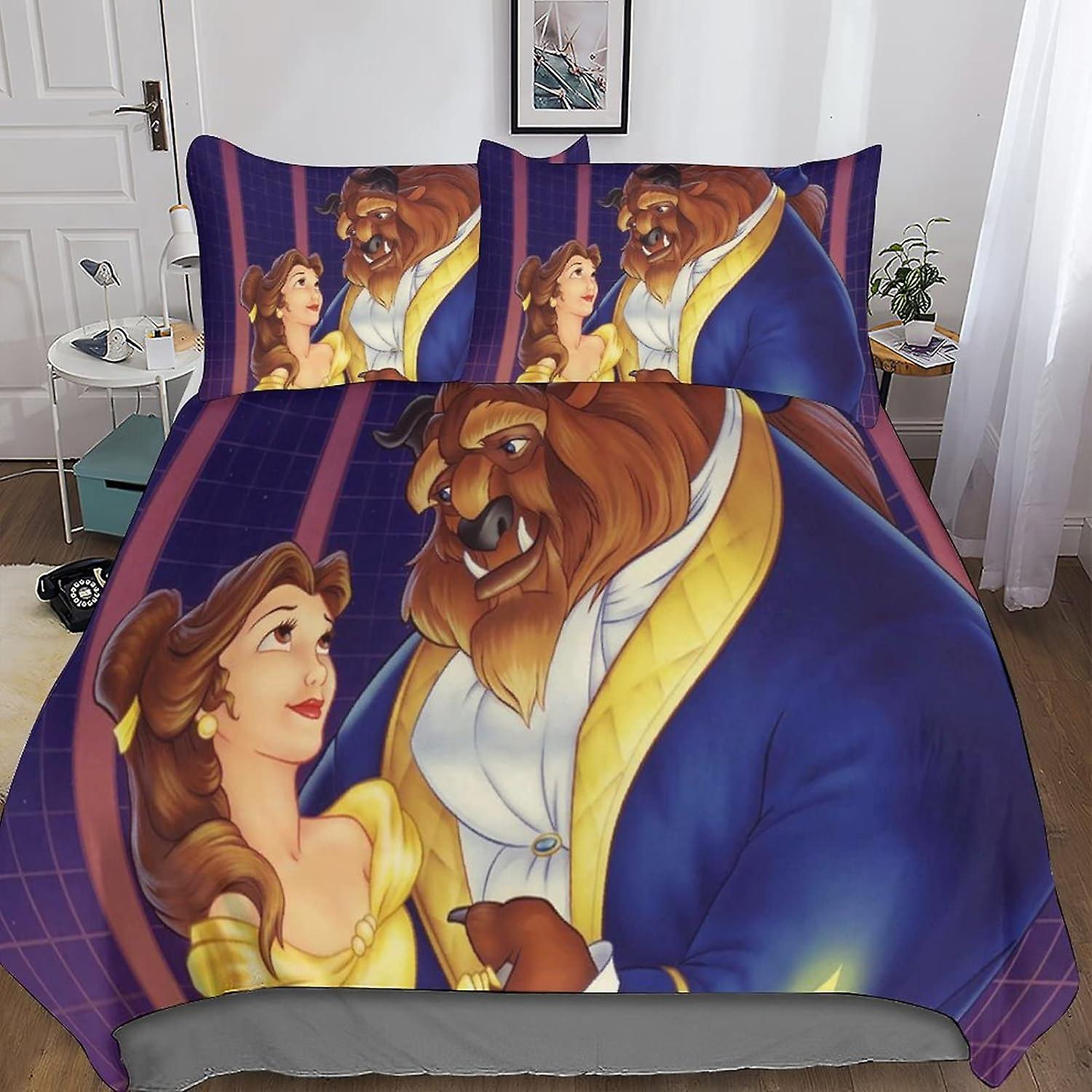 Beauty And The Beast 3D Duvet Cover 3-Pience Set Print Bedding Anime Characters Quilt Set with Hidden Zipper Pillowcases Soft Microfiber Easy Care Qui