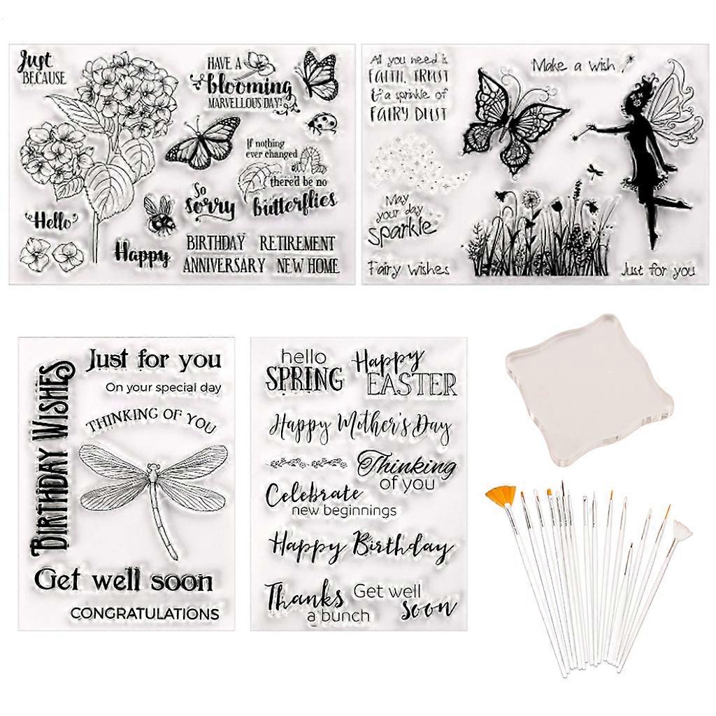 Fairy Clear Stamps Elegant Flower Fairy Dragonfly for Butterfly Wishes Letters Clear Stamps for Card Making Decoration