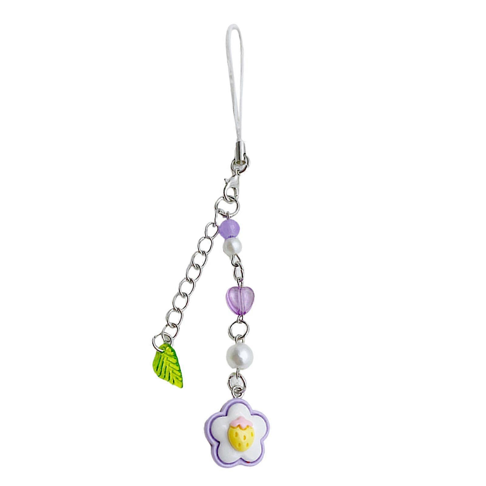Love Heart Pattern Bead Phone Lanyard Phone Charm Pendant Portable Keychain Stylish Accessory for Bags, and More Purple