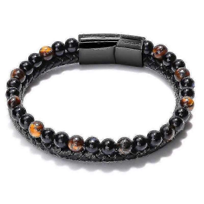 Natural Stone Tiger Eye Beaded Bracelet Men's Cowhide Rope Agate Bracelet Bracelet Bracelet