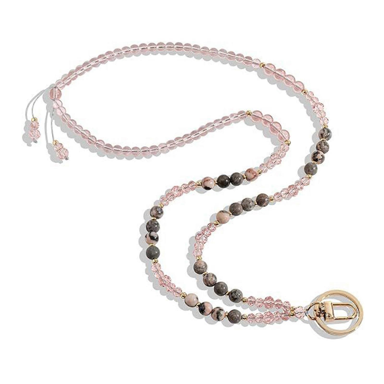 Natural Stone Faux Crystal Card Holder Adjustable ID Lanyard Women Handmade Beaded Badge Holder Lanyard