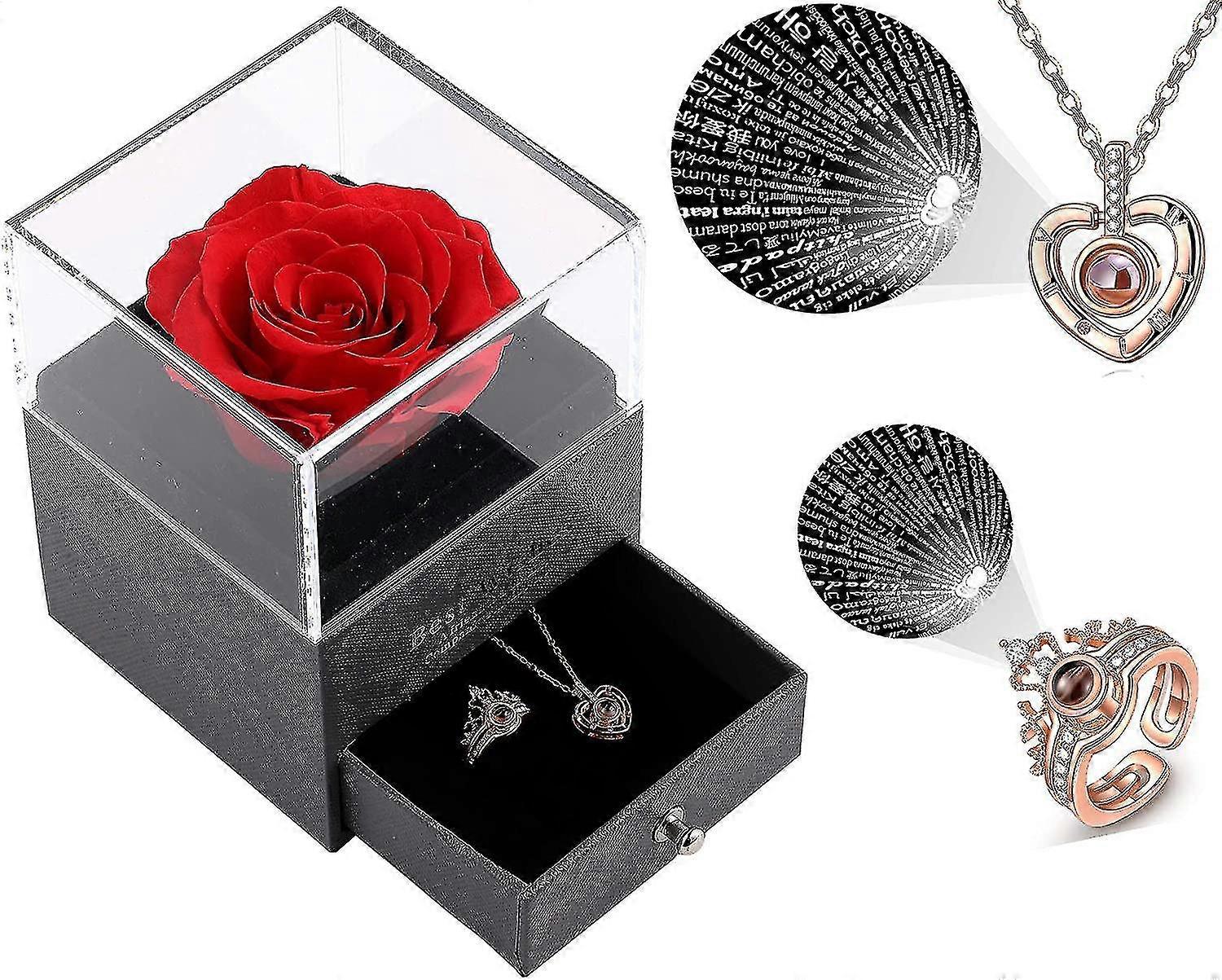 Preserved Real Rose Gift Box Enchanted Real Rose With I Love You Necklace