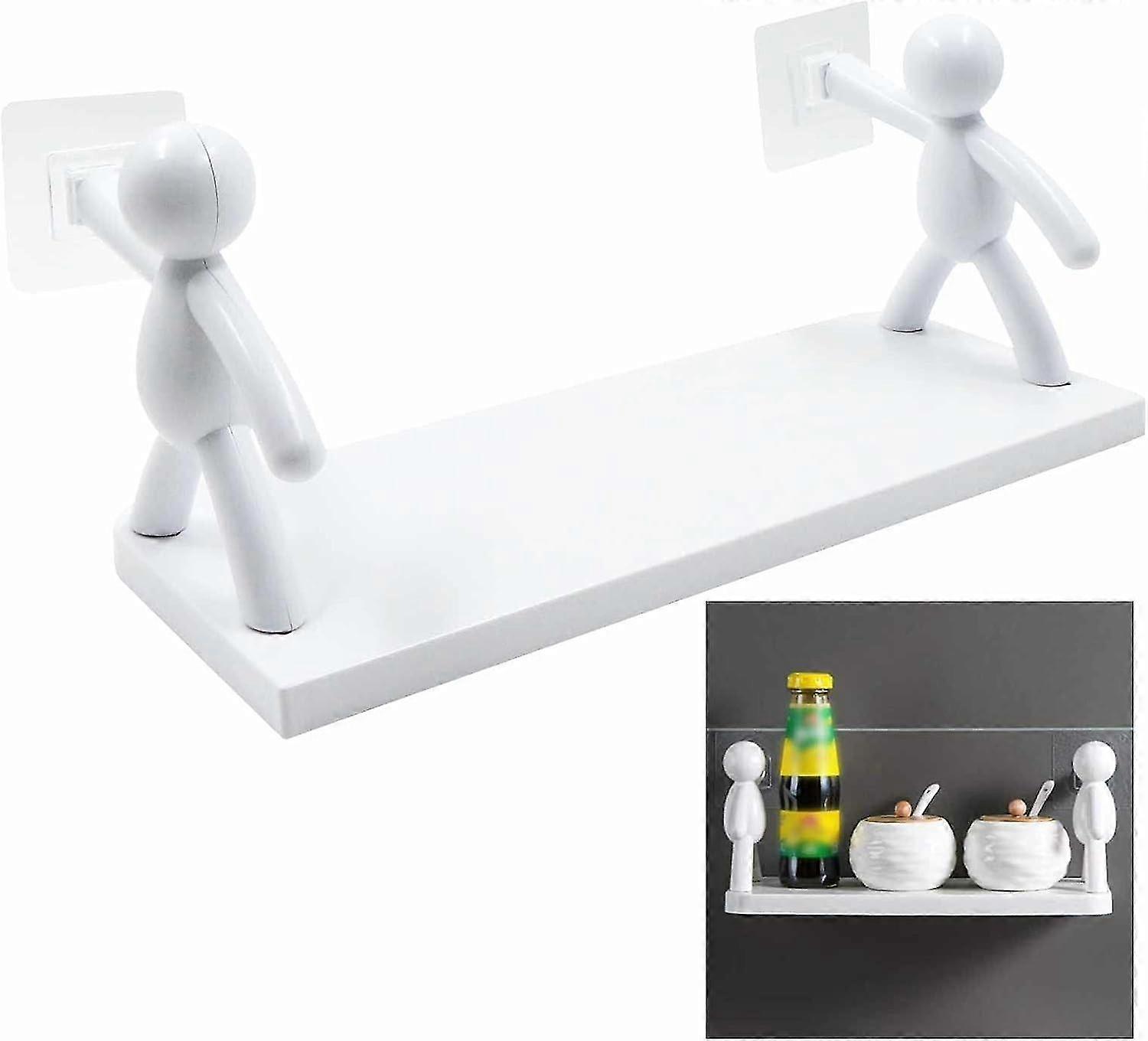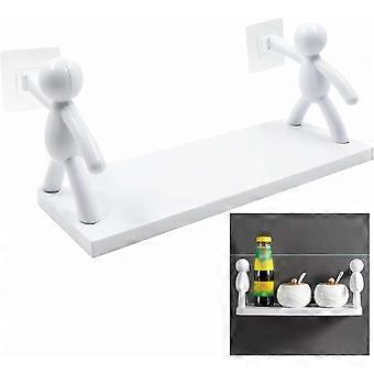 Floating Plastic Wall Shelf Bathroom - Makeup Storage Spice Organizer No Drilling Wall Storage Wall Bookcase Display Stand Storage Rack, White