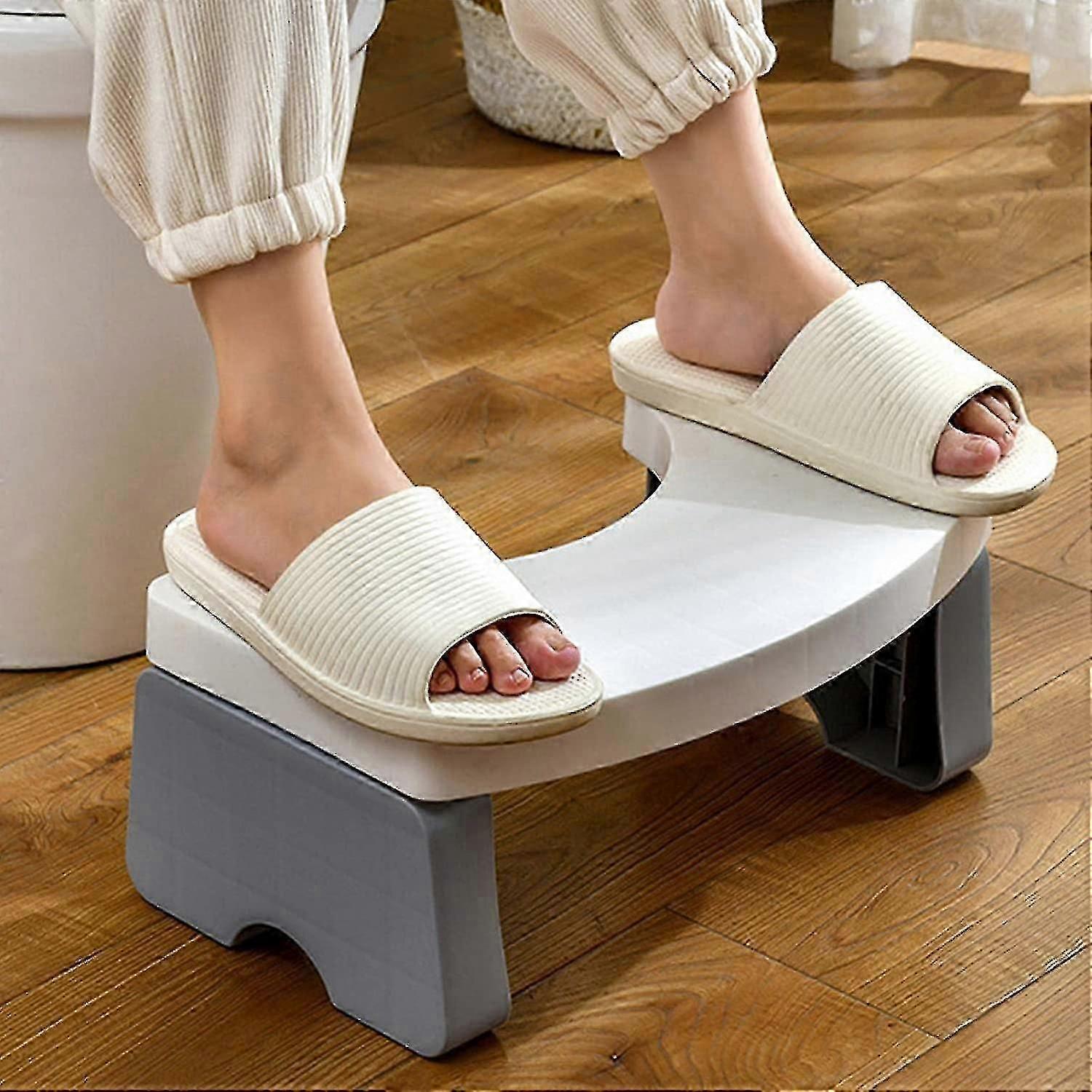Bathroom Folding Toilet Stool For Adults And Kids, Bathroom Squat Stool, Heavy Duty 7inch Non Slip Squatting Pooping C Curve Toilet Stool(white)1pcs