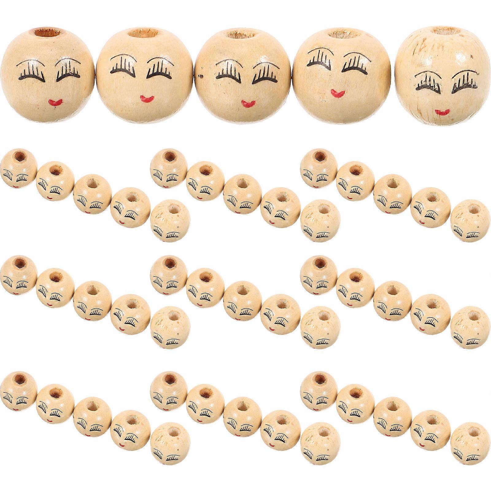 Natural Wood Beads with Face Diy Crafts Home Decoration Jewelry Making Round Khaki 1.8x1.8cm 50Pcs