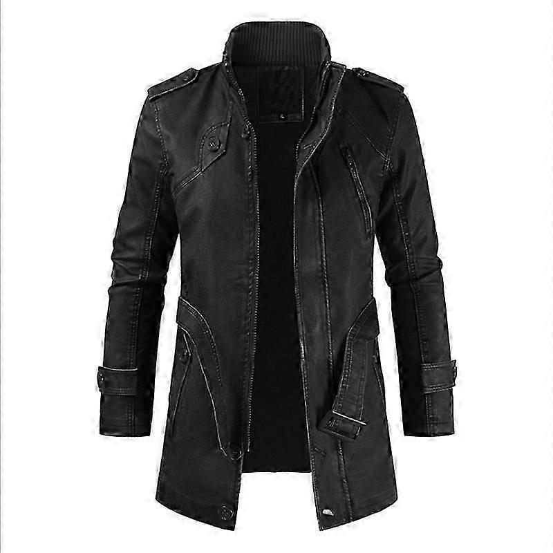 Autumn and winter new men's mid-length casual fashion PU leather jacket stand collar slim fit youth trench coat!ZZ17