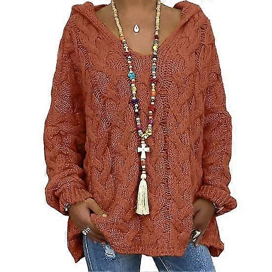 Autumn Winter Women Loose Fit Knitted Sweater Hooded Long Sleeve Twist Knot Mid length Knitwear Hoodie Pullover Coat