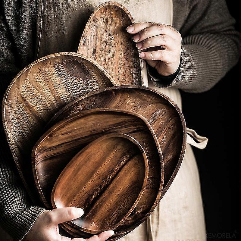 Whole Wood Lovesickness Wood Irregular Oval Solid Wood Pan Plate Fruit Dishes Saucer Tea Tray Dessert Dinner Plate Tableware Set