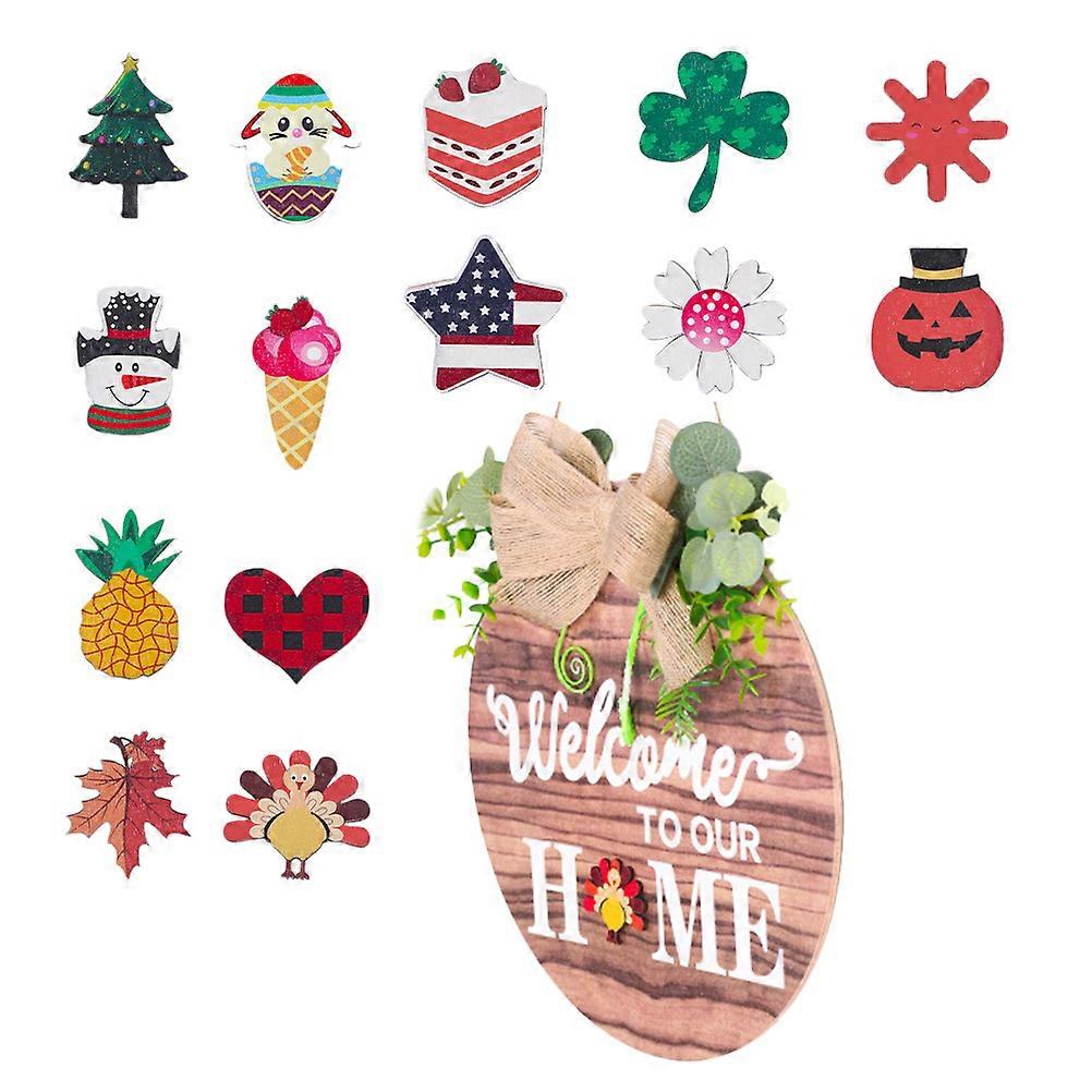 Wood Hanging Ornaments Home Decor Front Door Outdoor Hanging Decoration Wooden Material 1 Set