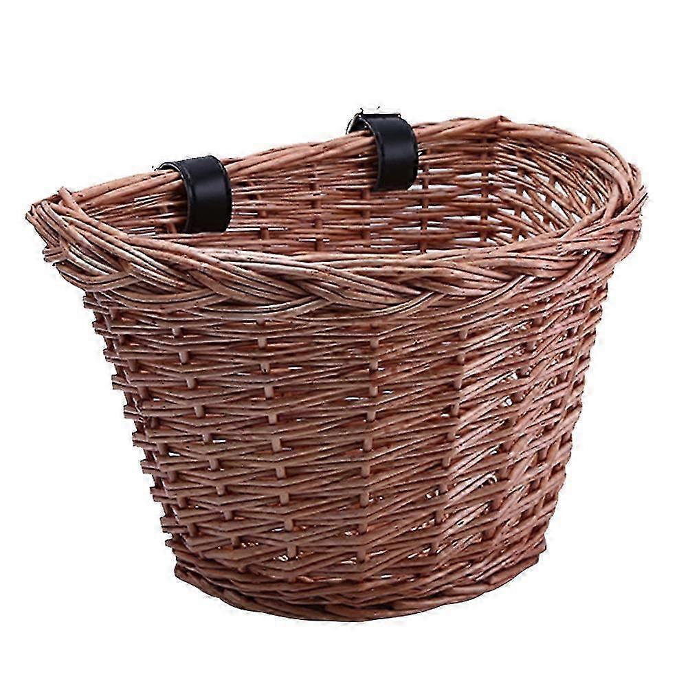 Wicker D-Shaped Bike Basket Portable Hand-Woven Shopping Basket Folk Craftsmanship Basket with