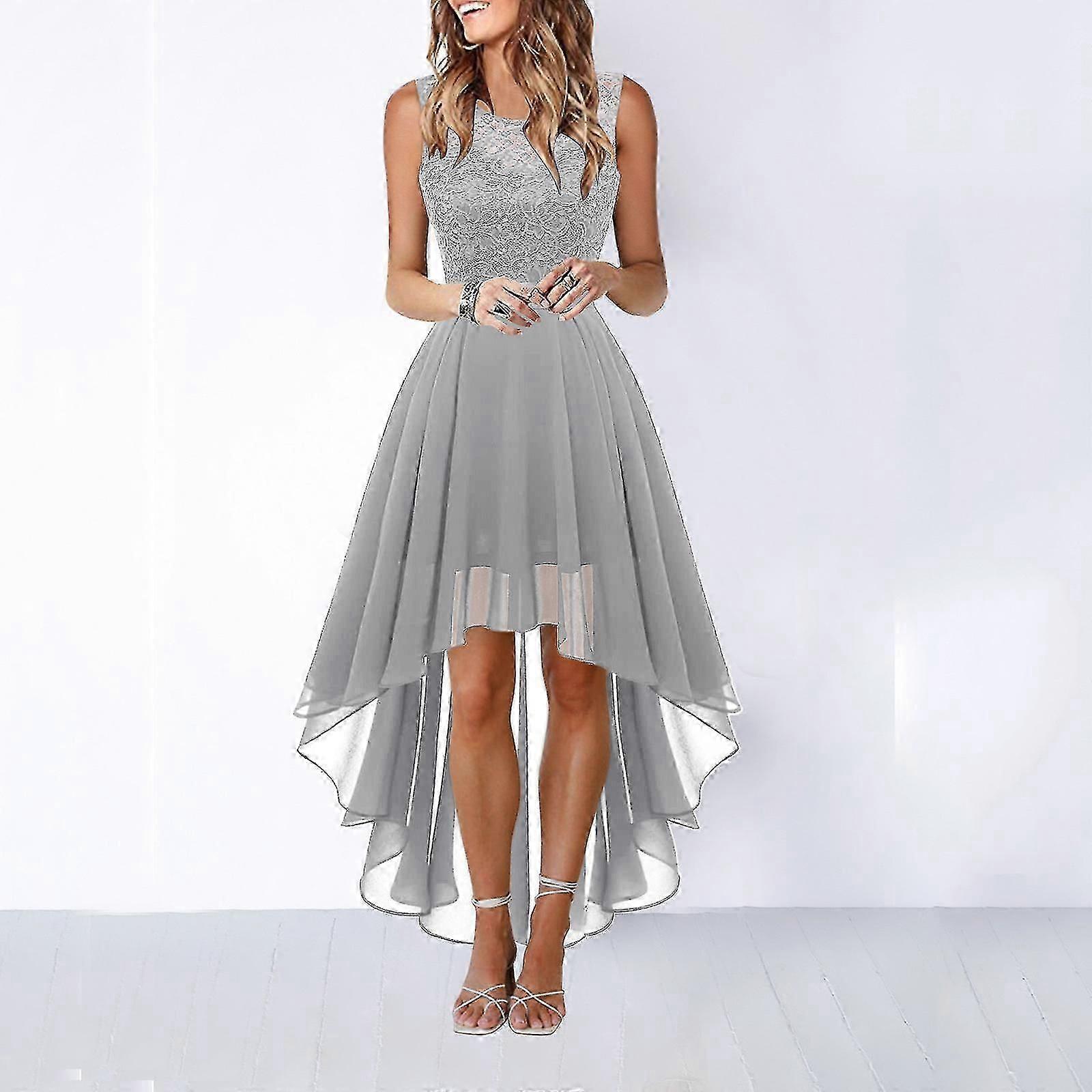 Lace Dress Bow Belt Elegant Irregular Length Dresses For Women Wedding Guest Sleeveless Bridesmaid Cocktail Party Dresszz29