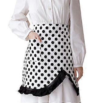 Lace Round Dot Waist Apron with Pocket Cotton Cloth Fashion Cooking Bib for Home Kitchen Bakery Baking Restaurant Women White