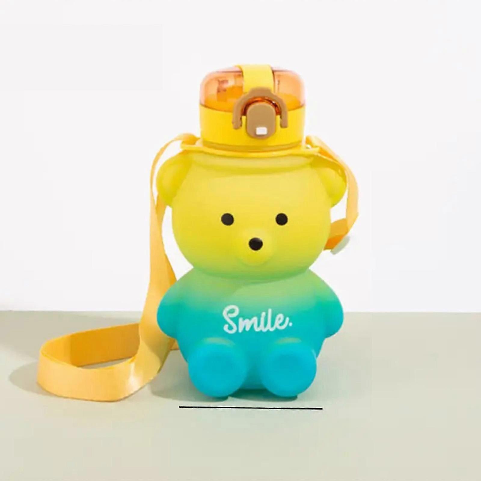 Bear Straw Cute Cartoon Bear Water Bottles with Straws and Handle and Strap - Cute Water Bottles with Cute Stickers
