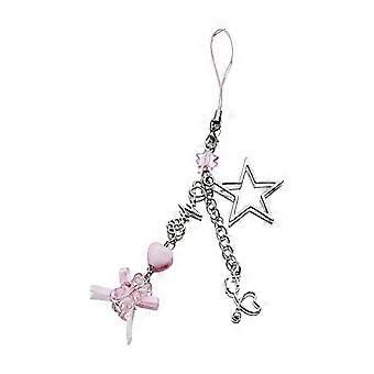 Cute Star Bear Camera Bag Accessory Trendy Bear with Star and Heart Keychain Elegant Phone Chain Lanyard Accessory Pink