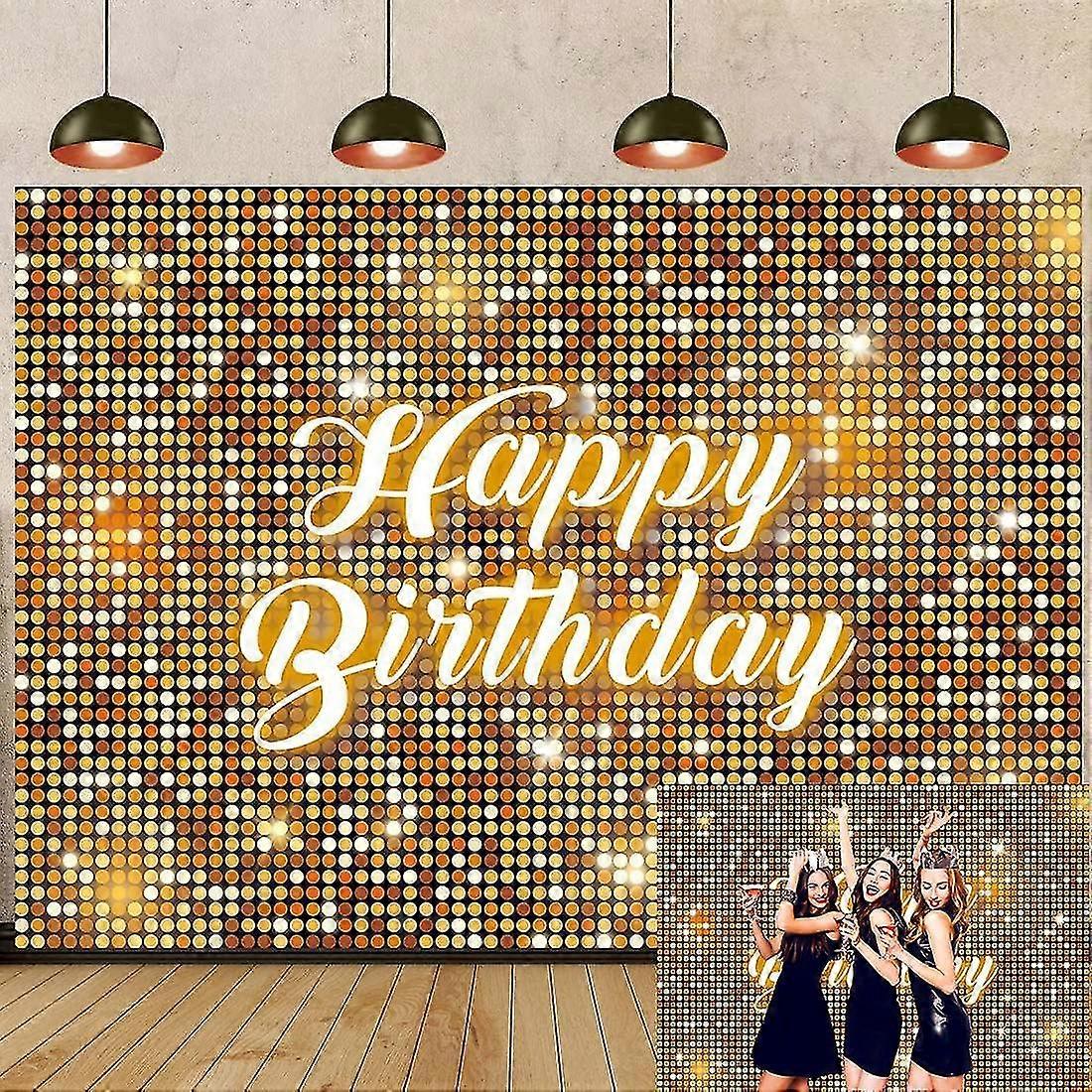Gold Glitter Square Wall Background Gold Happy Birthday Sequin Glitter Photography Backdrop for Girls Birthday Party Decoration Banner(7X5 Feet Gold)
