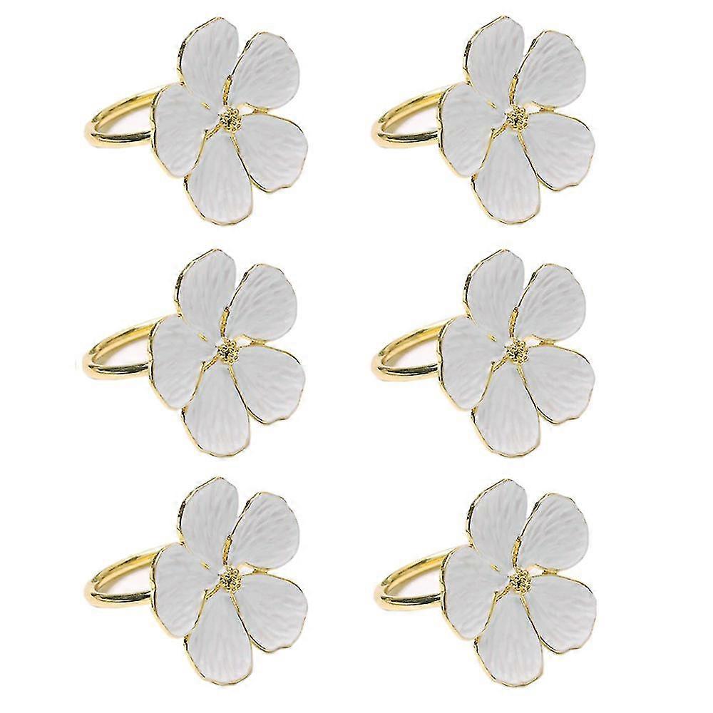Gold Flower Napkin Rings Set Of 6, Holiday White Napkin Rings For Wedding Party Holder Dining Tables