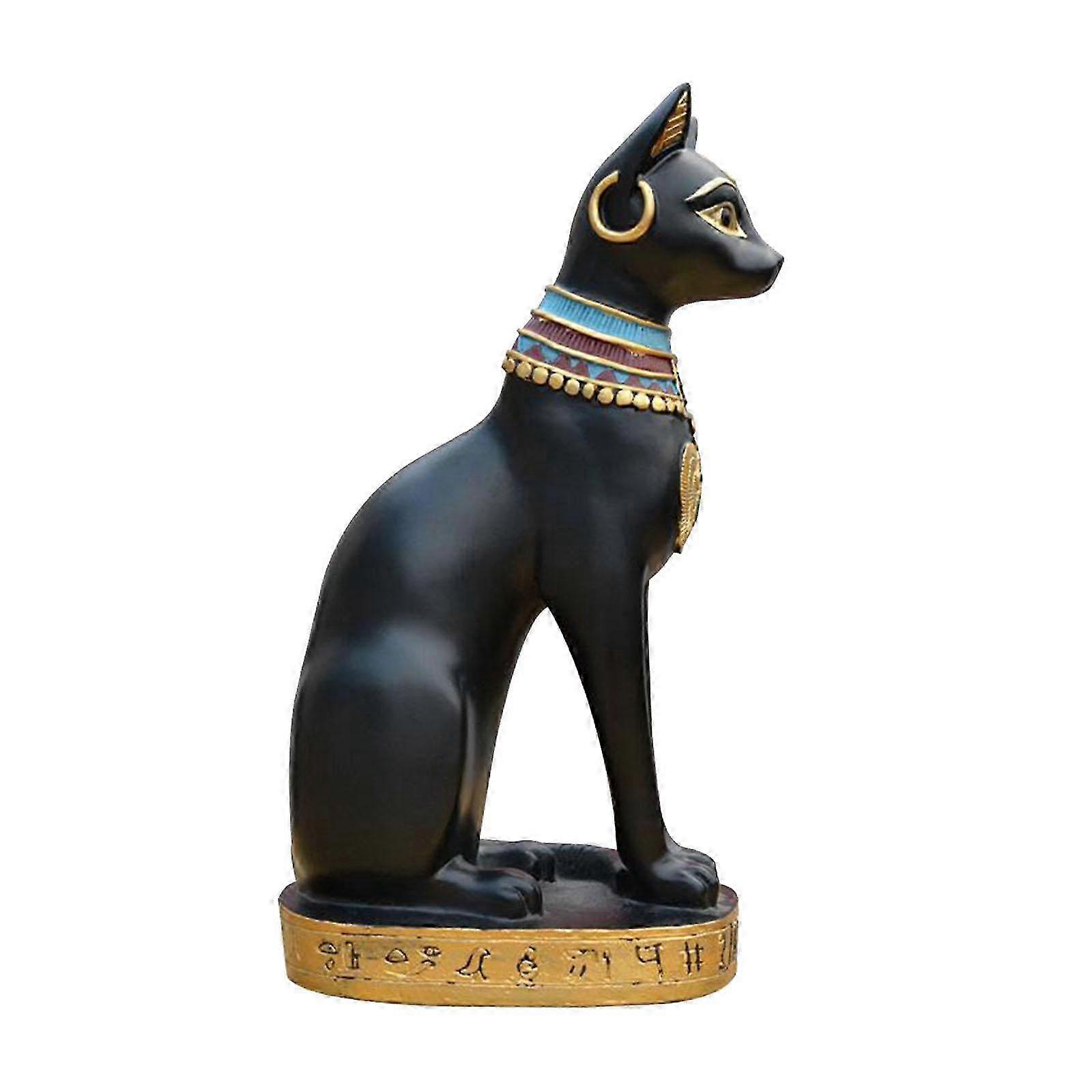 Resin Egyptian Cat Sculpture - Ancient Baster Goddess Statue Handmade Craft Decor for Home Office Tabletop Bar