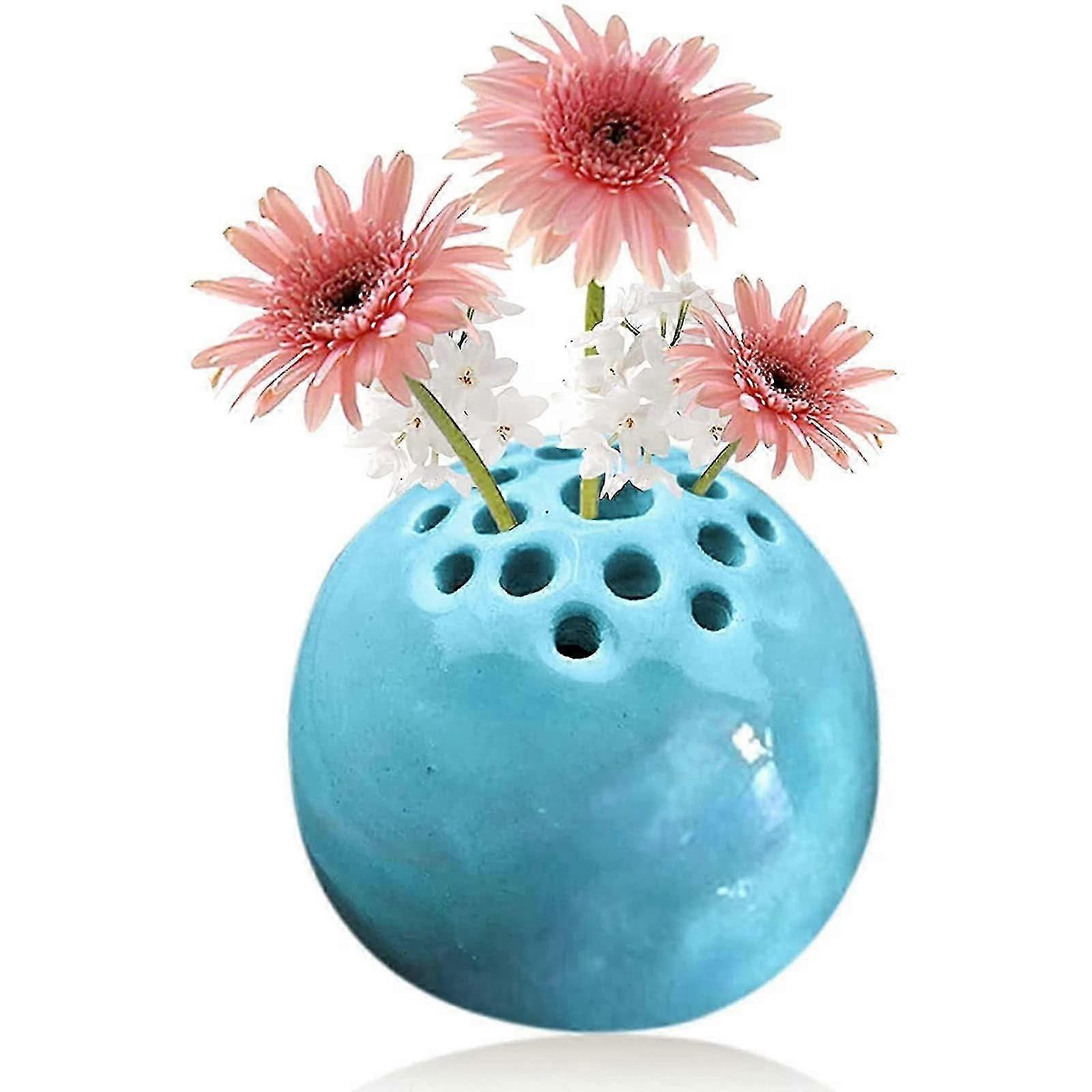Resin handmade vase flower stone table decoration, perforated vase, mini round miniature vase gift for mom -GSLA